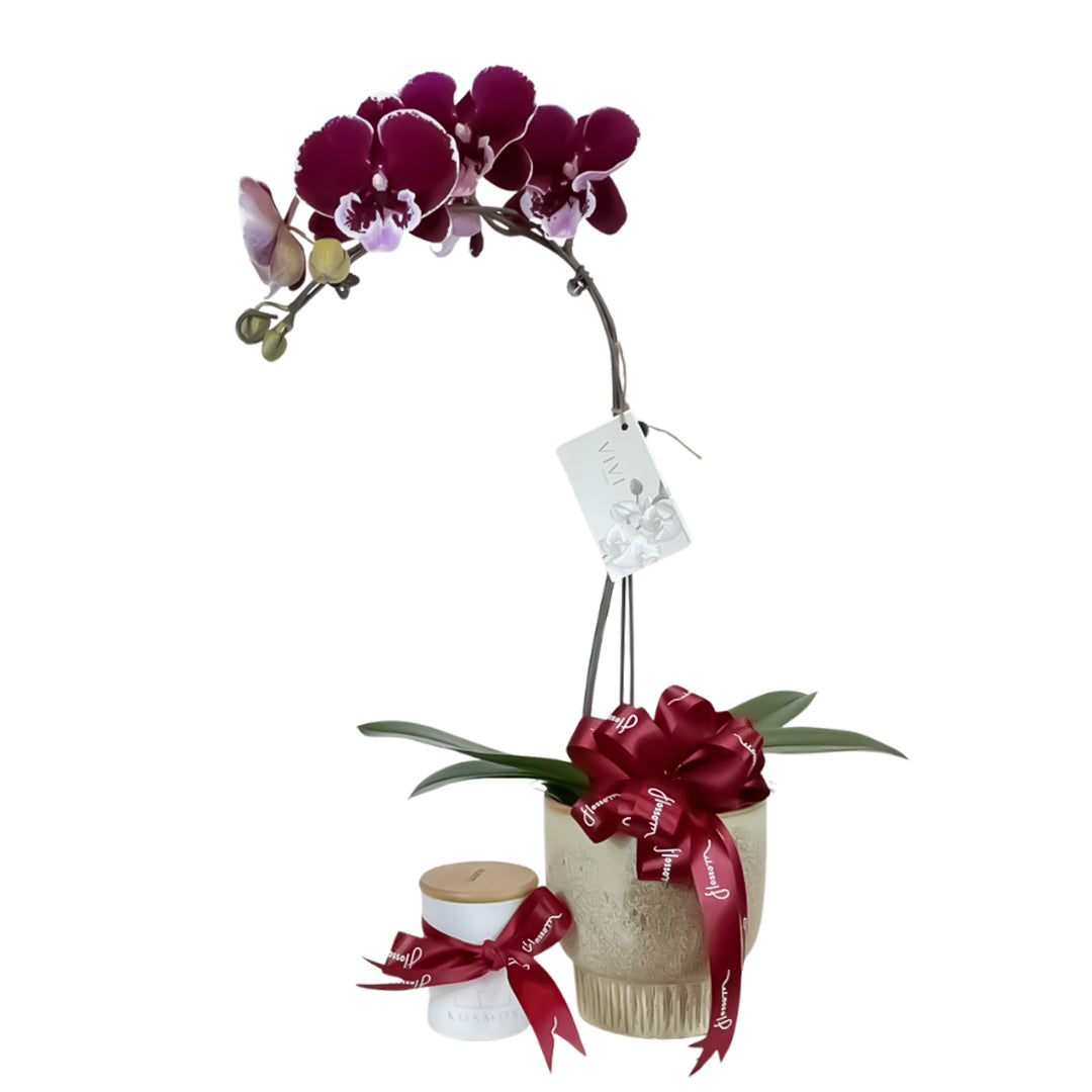 1-stem large arrangement in ceramic vase with Scented Candle