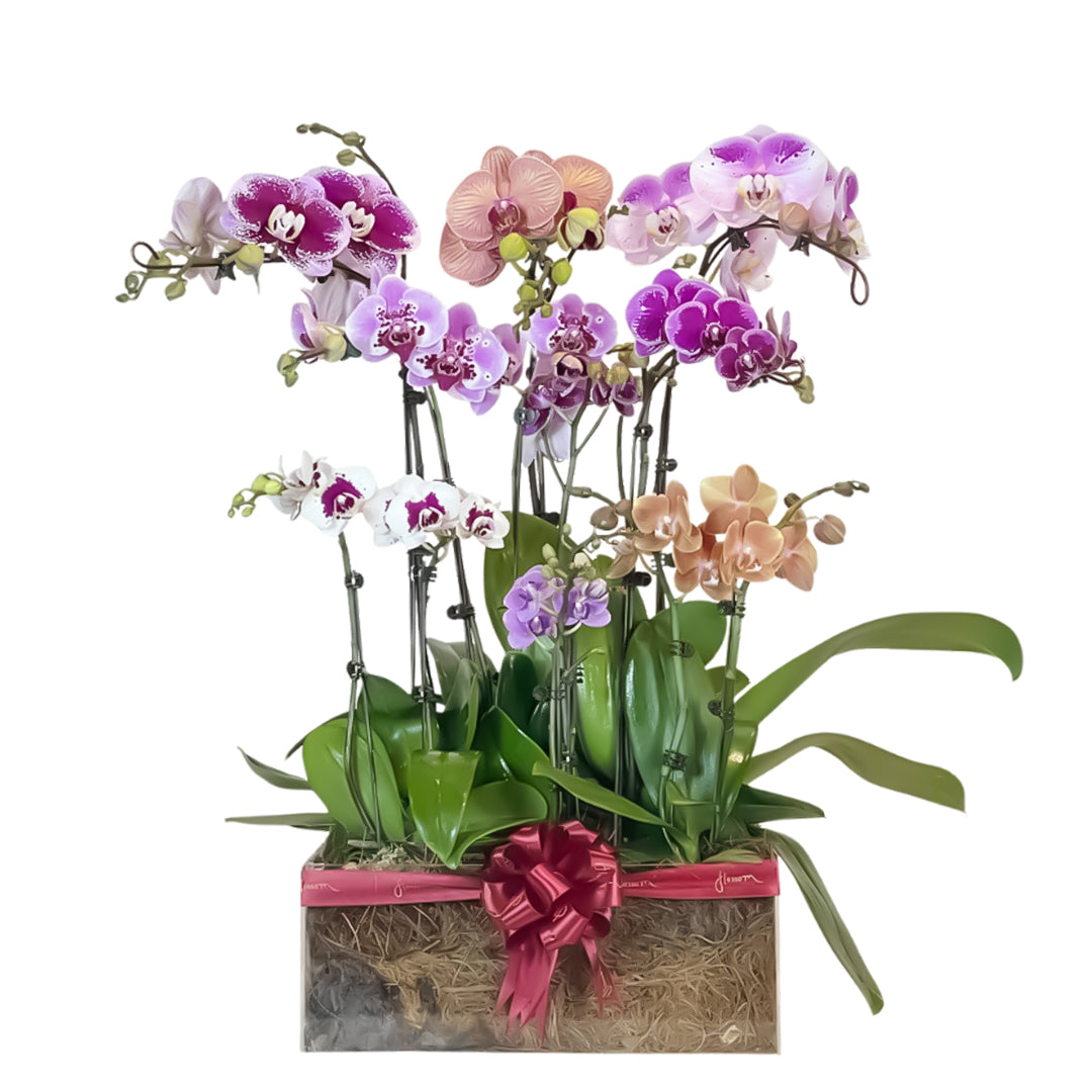 13-stem mix arrangement (medium and large) in acrylic box